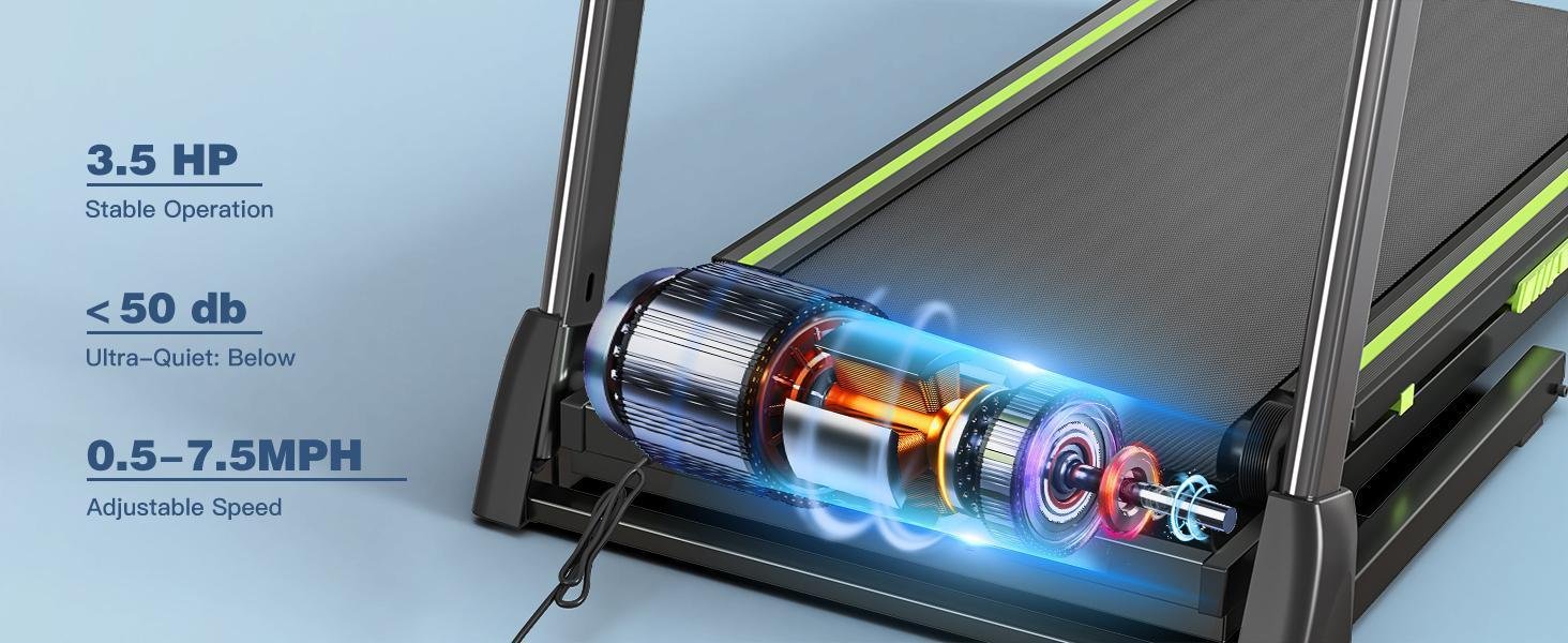 【3.5HP Powerful Motor】 XMKEY Folding treadmill is Equipped with a 3.5HP quiet motor, adjustment speed range 0.5-7.5 mph, and features a dual shock absorbing system with a noise level of less than 50 db, like a pet running around the house, which allows you to work out at home.