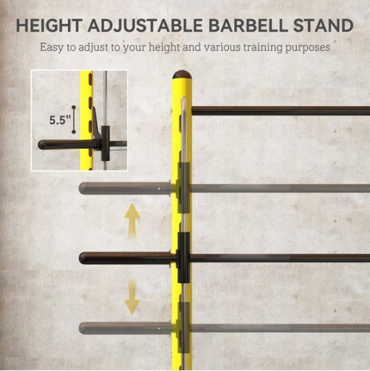 - – Barbell Rack Height: 19.75″ – 69″ H
